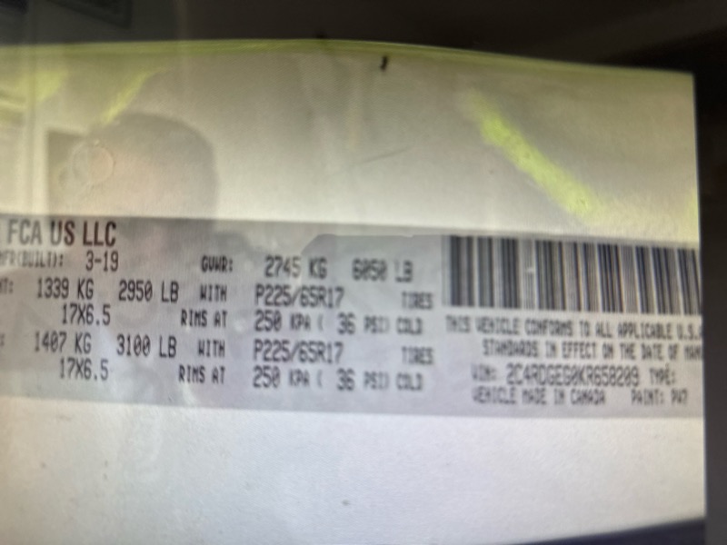 Vehicle Inquiry for 2019 Dodge Grand Caravan GT